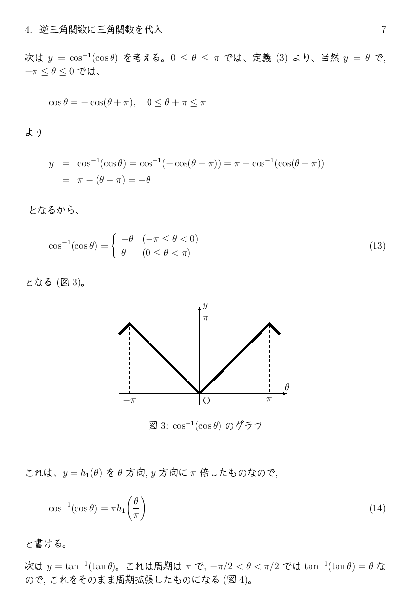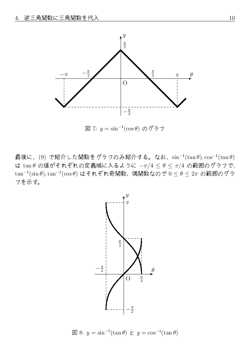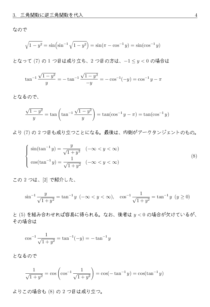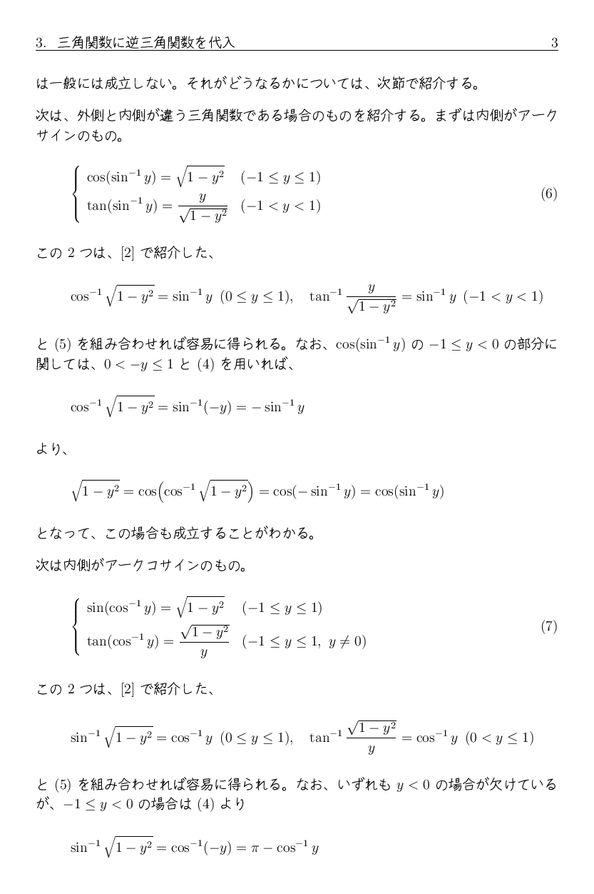 「逆三角関数の性質」 に、 三角関数と逆三角関数の合成関数に関する性質を追加します。
